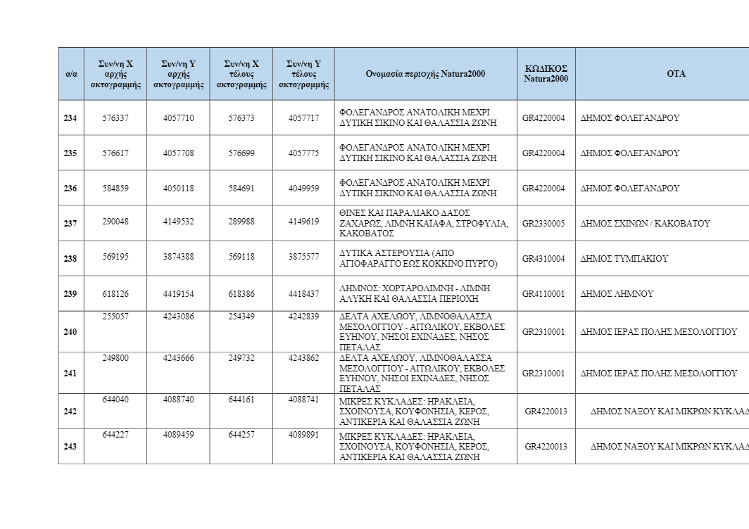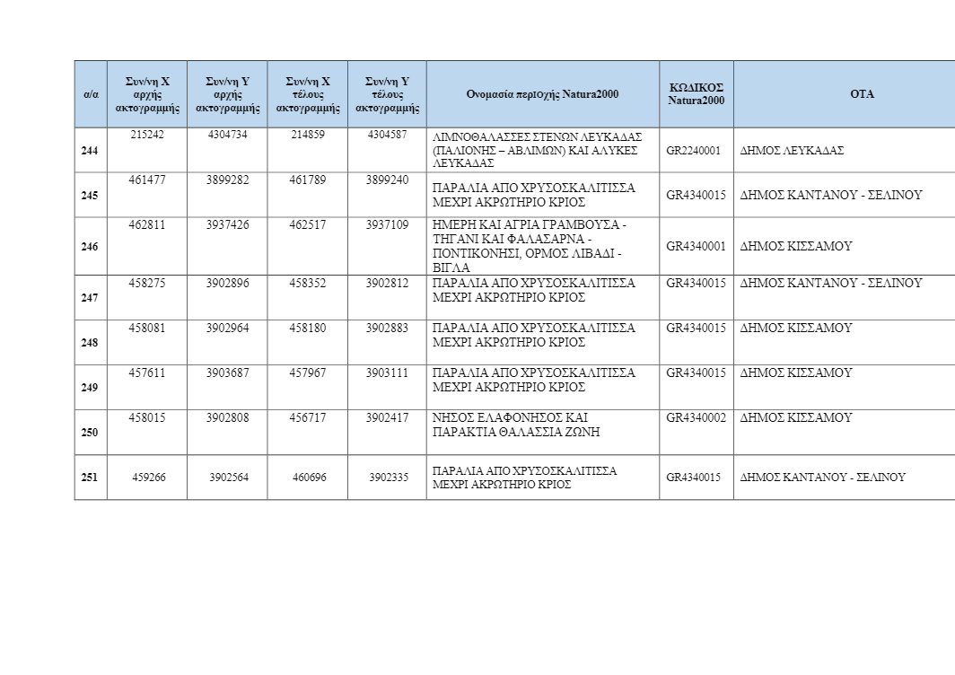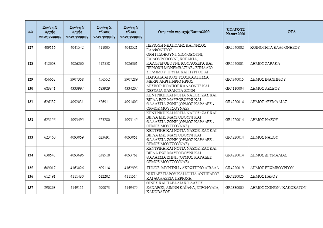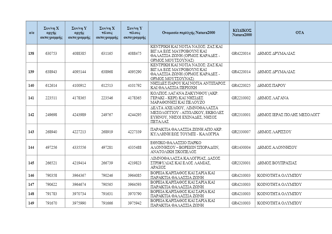 Ειδικότερα, αυξάνονται οι αιγιαλοί και παραλίες εντός περιοχών που συμπεριλαμβάνονται στον Εθνικό Κατάλογο Περιοχών του Ευρωπαϊκού Οικολογικού Δικτύου Natura 2000 και στις οποίες απαγορεύεται πλέον η παραχώρηση απλής χρήσης, καθώς και οποιαδήποτε άλλη δράση, που μπορεί να θέσει σε κίνδυνο τη μορφολογία τους και την ακεραιότητά τους ως προς τις οικολογικές τους λειτουργίες».