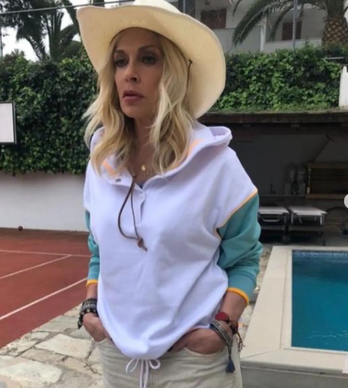 Μάλιστα, στον εξωτερικό χώρο, δίπλα από την πισίνα, έχει και το δικό της γήπεδο του τένις, κάνοντας και άλλο ένα είδος άσκησης.