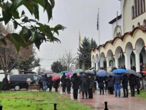 Έφυγε άδικα λένε όσοι παραβρίσκονται εκεί και συμπληρώνουν πως ήταν μια εξαιρετική γυναίκα. Σχεδόν όλο το χωριό, άλλωστε βρίσκεται στο σημείο για να την αποχαιρετήσει, παρά τη βροχή.