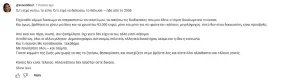 Σε ένα από τα σχόλια, συγκεκριμένα έγραψε: «Μέχρι που δούλευα και σεζόν και πόσα έχω κάνει για να πηγαίνει ο αείμνηστος με τις γκόμενες τις δικηγορίνες βόλτα στα μπουζούκια και να φωτογραφίζεται και ταυτόχρονα να με υποτιμάει και ταυτόχρονα πολλά άλλα, και εννοείται μικρότερες από εμένα, να πετάει λουλούδια… Βεβαίως τα κατάφερα. Ήταν ξεφτίλα των ελληνικών νόμων που δεν εφαρμόστηκε η αυτονόητη διατροφή των 2200 που πήρα για όλα, plus σχολεία που δεν πλήρωσε, plus ότι σταμάτησε και αυτά να πληρώνει. Και εννοείται με πέταξε κανονικότατα στο δρόμο και εννοείται ΤΑ ΚΑΤΑΦΕΡΑ»
