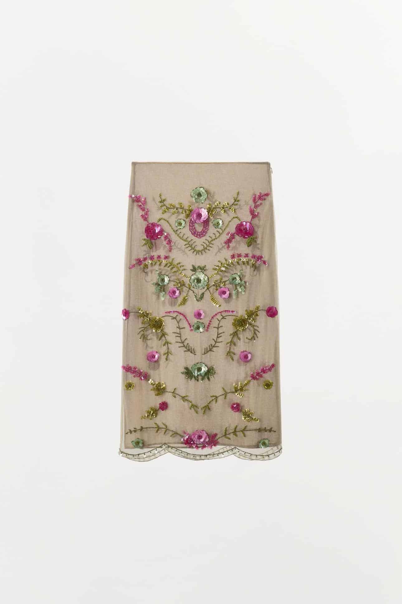 Είναι πολλά τα στοιχεία που κάνουν αυτή τη φούστα της Zara να ξεχωρίζει ως η πιο όμορφη. Η midi γραμμή της προσδίδει κομψότητα, το ύφασμα λεπτότητα και τα κεντήματα μια vintage αισθητική. Μας ενθουσιάζει επίσης ο χρωματικός συνδυασμός ανάμεσα στο ροζ και το τιρκουάζ.