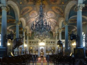 Η ανέγερση του νέου ναού ξεκίνησε το 1908, αλλά ολοκληρώθηκε πολλές δεκαετίες αργότερα, με τα εγκαίνια να τελούνται το 1974. Η καθυστέρηση οφείλεται σε ιστορικές, οικονομικές και πολεμικές συγκυρίες, γεγονός που κάνει την ολοκλήρωσή του ακόμη πιο σημαντική. Το εντυπωσιακό οικοδόμημα συνδυάζει βυζαντινά και νεοκλασικά στοιχεία, ενώ η μεγαλοπρεπής του δομή με τον κεντρικό τρούλο ύψους περίπου 46 μέτρων δημιουργεί μια επιβλητική ατμόσφαιρα που μαγνητίζει τον επισκέπτη.