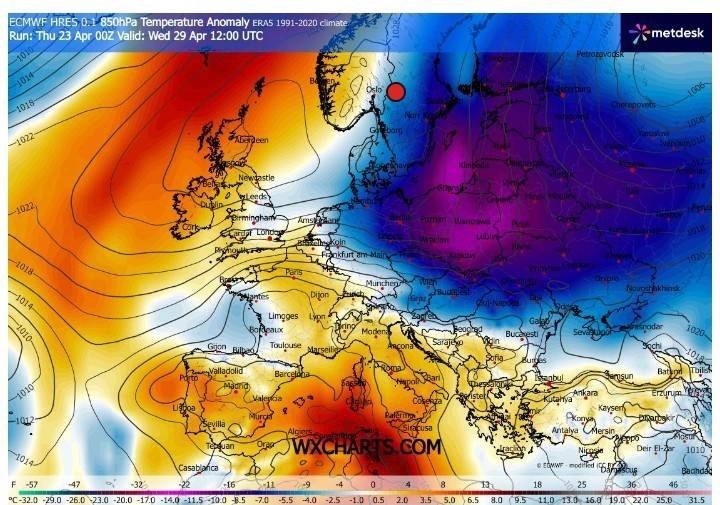 Η κατάσταση, ωστόσο, παρουσιάζει περαιτέρω ενδιαφέρον αν λάβουμε υπόψη τις αναλύσεις μετεωρολόγων από την Ιταλία, όπως αυτές αποτυπώνονται στην ιστοσελίδα meteoweb.eu. Σύμφωνα με αυτές τις εκτιμήσεις, η χώρα μας ενδέχεται να βιώσει μια απότομη μεταβολή του καιρικού σκηνικού, το οποίο θα θυμίζει περισσότερο φθινόπωρο παρά τις πρώτες ημέρες του Μαΐου. Η εξέλιξη αυτή αποδίδεται στην κάθοδο ψυχρών αέριων μαζών από τα Βαλκάνια, οι οποίες αναμένεται να επηρεάσουν άμεσα τις κλιματικές συνθήκες. Η κρισιμότερη εξέλιξη τοποθετείται στις αρχές Μαΐου, όταν μια ψυχρή αέρια μάζα πολικής προέλευσης, προερχόμενη από την περιοχή της Ρωσίας, θα κινηθεί προς τα Βαλκάνια και θα συγκρουστεί με τις θερμότερες αέριες μάζες που ήδη βρίσκονται πάνω από τον ελληνικό χώρο.\