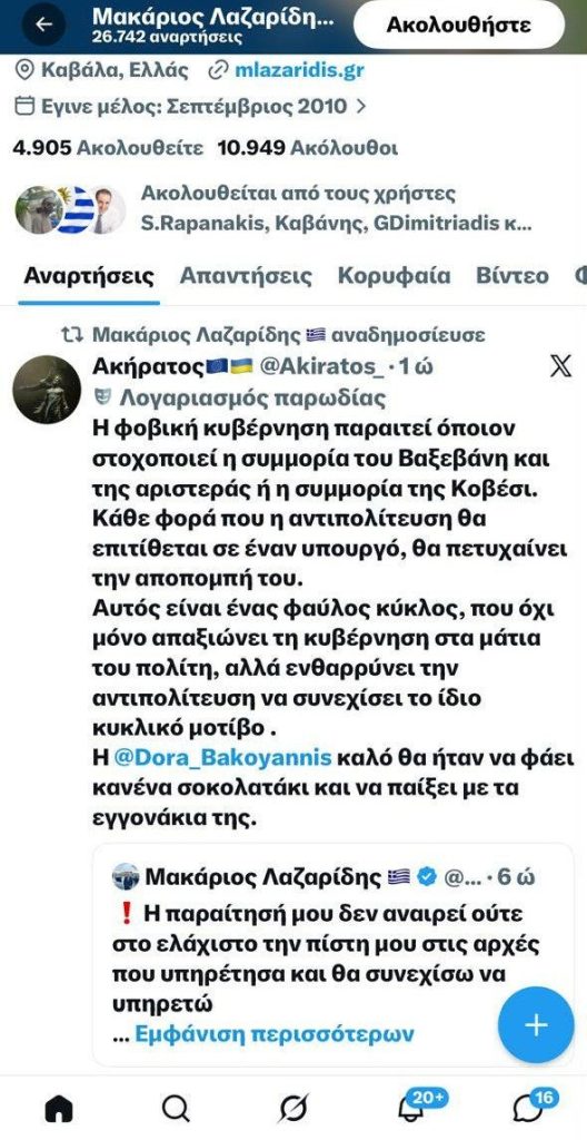 Η στάση που υιοθέτησε ο Μακάριος Λαζαρίδης μετά την απομάκρυνσή του είναι ιδιαίτερα επιθετική, υποδηλώνοντας μια έντονη δυσαρέσκεια που εκδηλώνεται μέσω αναρτήσεων στα μέσα κοινωνικής δικτύωσης. Ο ίδιος, προφανώς πικραμένος από τις εξελίξεις, δεν δίστασε να βάλλει κατά προσώπων που βρίσκονται στο επίκεντρο της πολιτικής και δημοσιογραφικής επικαιρότητας.