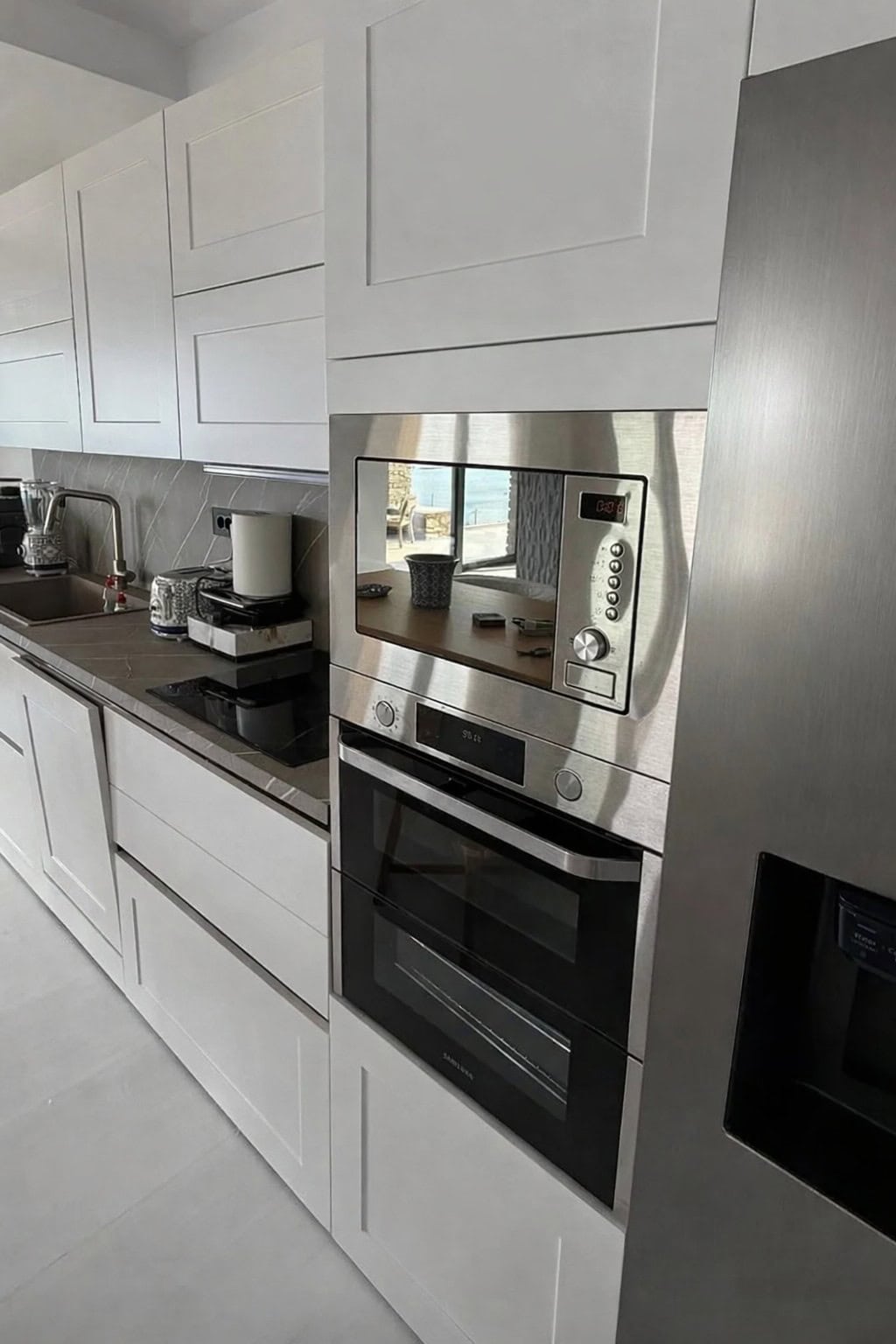 Πρόκειται για μια κατοικία που ξεπερνά τα 160 τετραγωνικά μέτρα, αναπτυγμένη σε επίπεδα, με υπόγειο περίπου 111 τ.μ. που φιλοξενεί τέσσερα υπνοδωμάτια και βοηθητικούς χώρους, ενώ το ισόγειο εκτείνεται σε περίπου 50 τ.μ. Οι χώροι χαρακτηρίζονται από μίνιμαλ αισθητική, κυκλαδίτικα στοιχεία, λευκούς τόνους και φυσικά υλικά, ενώ η ανεμπόδιστη θέα στο Αιγαίο και η τεράστια πισίνα δημιουργεί μια αίσθηση απόλυτης ηρεμίας και ιδιωτικότητας.