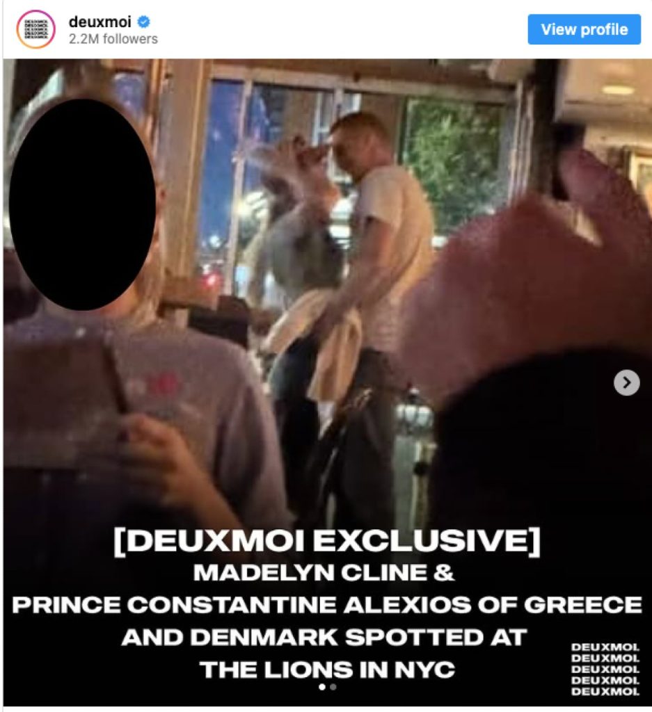 Η ηθοποιός Madelyn Cline βρέθηκε στο επίκεντρο της προσοχής μετά την πυροδότηση φημών για σχέση με τον Κωνσταντίνο Αλέξιο. Πρόσφατα δημοσιευμένες φωτογραφίες και βίντεο έδειχναν το ζευγάρι να μοιράζεται τρυφερές στιγμές σε ένα εστιατόριο και να περπατάει στους δρόμους της Νέας Υόρκης, ντοκουμέντα που επιβεβαίωσαν τη σχέση τους. Επιπλέον πλάνα από το DeuxMoi έδειχναν το ζευγάρι να περπατάει χέρι-χέρι σε έναν πολυσύχναστο δρόμο της Νέας Υόρκης.