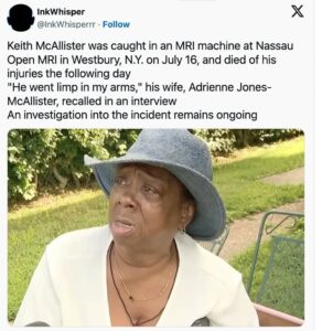 ΗΠΑ: Πέθανε ο 61χρονος που τον «κατάπιε» ο μαγνητικός τομογράφος – Φορούσε αλυσίδα εννέα κιλών, δήλωσε η γυναίκα του Η Αντριέν Τζόουνς-Μακάλιστερ δήλωσε ότι…
