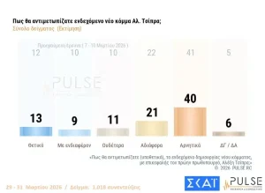 Στο ενδεχόμενο νέου κόμματος από τον Αντώνη Σαμαρά, θετικά ή με ενδιαφέρον το βλέπει το 13%.