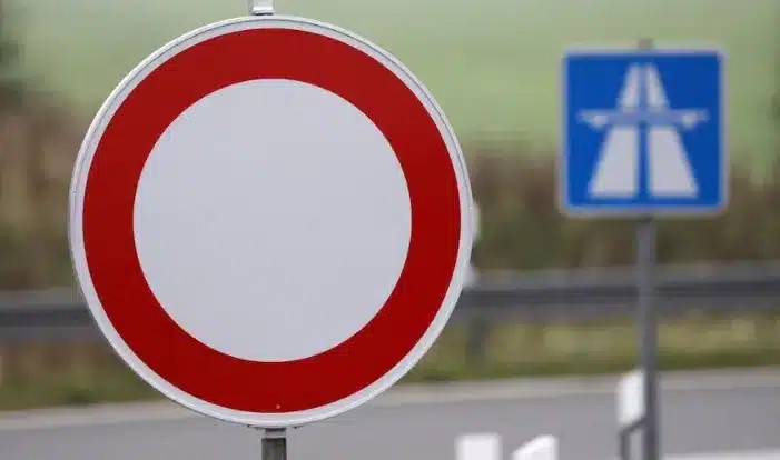 Στην περίπτωση που ο κόκκινος-απαγορευτικός κύκλος τοποθετηθεί σε λευκό φόντο, τότε υποδεικνύει την πλήρη απαγόρευση κυκλοφορίας οχημάτων στον συγκεκριμένο δρόμο και στις δύο κατευθύνσεις.