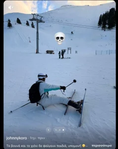 Μάλλον δεν πρόσεξε και τόσο εάν κρίνουμε από την τελευταία φωτογραφία που τον δείχνει να έχει πέσει κάτω και τον Κυριάκο Μητσοτάκη να τον παροτρύνει στα σχόλια να δοκιμάσει τις δυνάμεις του στο snowboard, γράφοντάς του: «Γύρνα το σε snowboard».