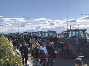 Εκατοντάδες τρακτέρ βρίσκονται πλέον στον αυτοκινητόδρομο Ε65 στη μεγαλύτερη κινητοποίηση των τελευταίων ετών.