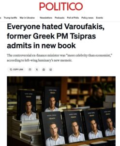 Το Politico χαρακτηρίζει τον Αλέξη Τσίπρα «αστέρα της Αριστεράς» και επισημαίνει ότι στα απομνημονέυματά του καταγράφει την πολιτική του πορεία, υπερασπίζεται τις πολιτικές του επιλογές και επιχειρεί αυτοκριτική.