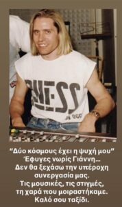 Γιάννη μου… καλό σου ταξίδι. Θα σε θυμάμαι πάντα με αγάπη και σεβασμό. Θερμά συλλυπητήρια στην οικογένεια και στους ανθρώπους που τον αγάπησαν», έγραφε η ανάρτηση.