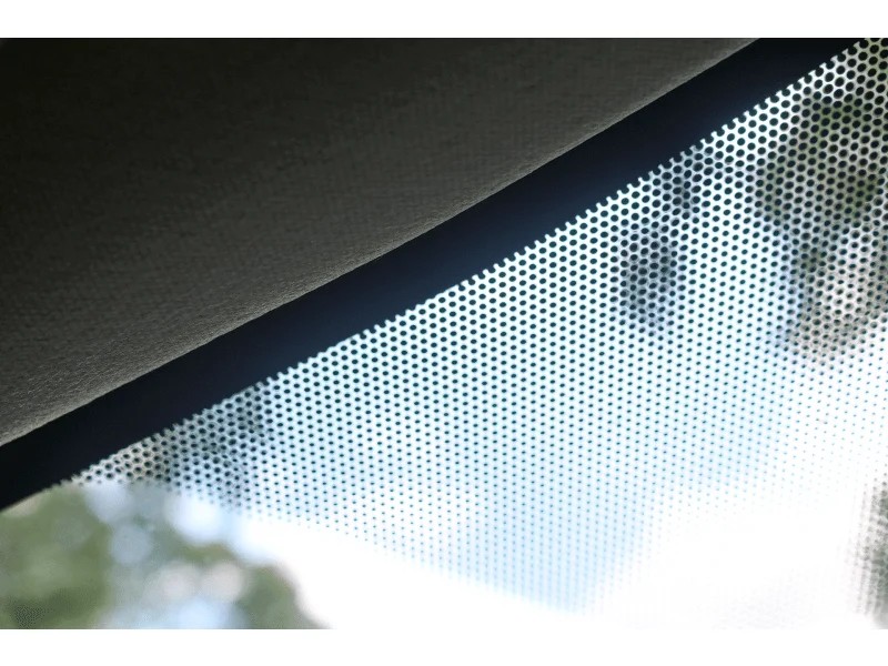 Στο πάνω μέρος του παρμπρίζ, πίσω από τον κεντρικό καθρέφτη, θα δείτε συνήθως μια μεγαλύτερη περιοχή γεμάτη κουκκίδες. Αυτή η περιοχή λειτουργεί ως ένα επιπλέον σκιάδιο. Καλύπτει το κενό που αφήνουν τα δύο μεγάλα σκιάδια (του οδηγού και του συνοδηγού), προστατεύοντας τα μάτια σας από το φως του ήλιου που περνάει ακριβώς πάνω από τον καθρέφτη.
