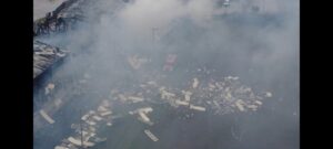 Οι δυνάμεις παραμένουν στο σημείο και επιχειρούν προσεκτικά, καθώς ο μεγάλος όγκος εύφλεκτων υλικών που υπήρχαν αποθηκευμένα στο εργοστάσιο συντηρεί το θερμικό φορτίο και απαιτεί πλήρη εκκαθάριση για την ασφάλεια των διασωστών.