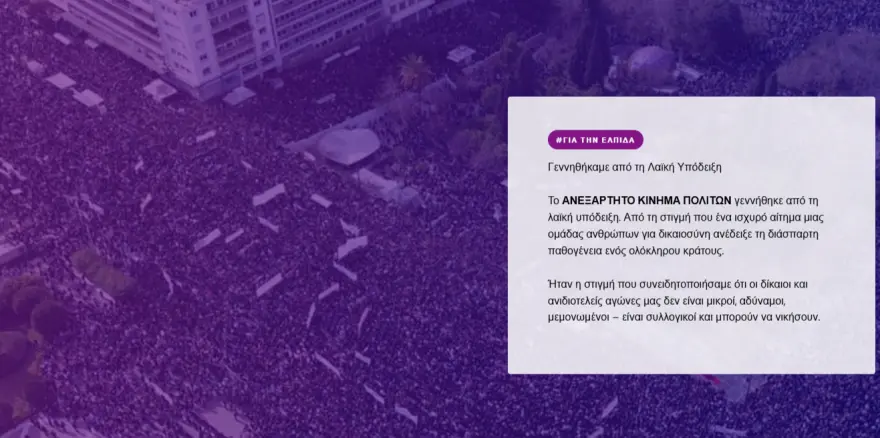 «Είμαστε ένα ανεξάρτητο κίνημα πολιτών που γεννιέται από τη βάση, από την κοινή μας ανάγκη να έρθει επιτέλους η αλλαγή» υποστηρίζει