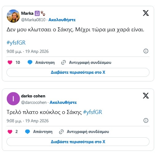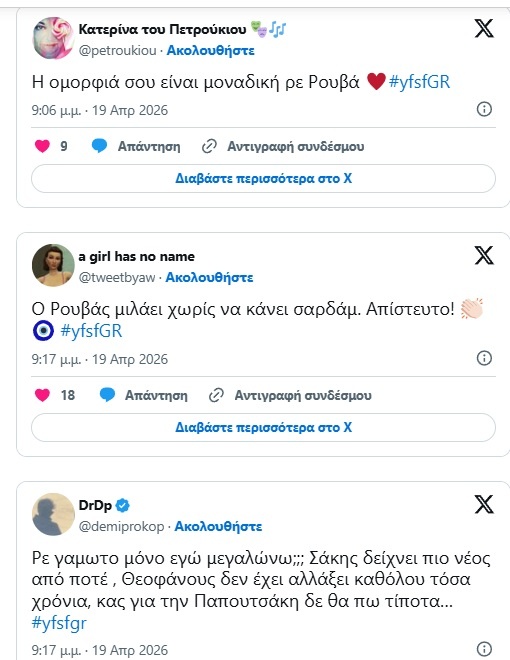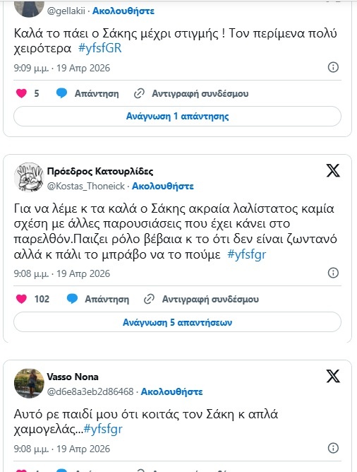 YFSF: Εντυπωσιασμένο το Χ με τον Σάκη Ρουβα – «Μιλάει χωρίς να κάνει σαρδάμ, απίστευτο!»