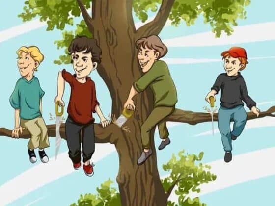 Την επόμενη φορά που θα χρειαστεί να πάρετε μια σημαντική απόφαση, θυμηθείτε αυτή την εικόνα: τέσσερα παιδιά, ένα δέντρο, ένα πριόνι… και ένα λάθος που αλλάζει τα πάντα.