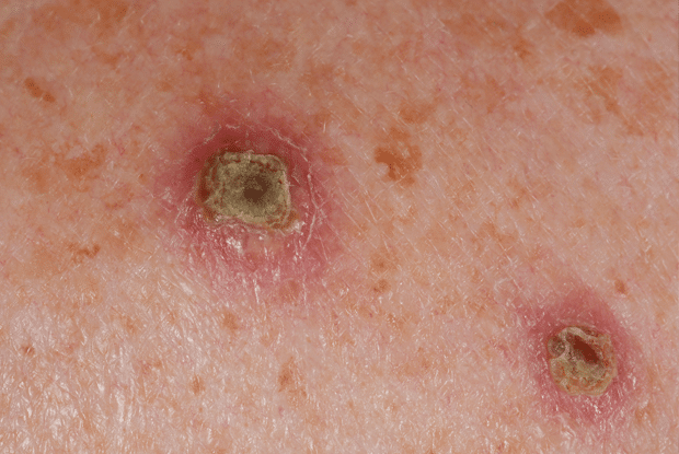 Συνήθως ξεκινά σε μέρη του σώματος με πτυχές δέρματος και θα εξαπλωθεί από εκεί. Στην όψη είναι κόκκινο και κηλιδωτό, με ξηρά λευκά ή κίτρινα μπαλώματα με κρούστα.