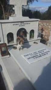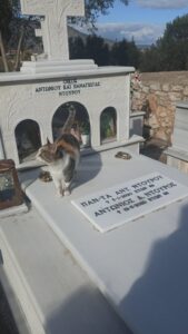 Το γατάκι δεν βρέθηκε κανένας να το πάρει και έμεινε μόνο. Και για κάποιο χρονικό διάστημα εξαφανίστηκε. Κάποια στιγμή όμως οι άνθρωποι του νεκροταφείου με μεγάλη έκπληξη το είδαν να κάθεται πάνω στο μνήμα τους. Και το αναγνώρισαν. Είχε εγκατασταθεί στο νεκροταφείο όπου πλέον ζει μόνιμα.