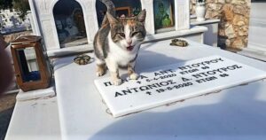 Έκλαψαν και οι πιο σκληροί: Γατάκι ζει μόνιμα στον τάφο των ανθρώπων που το είχαν