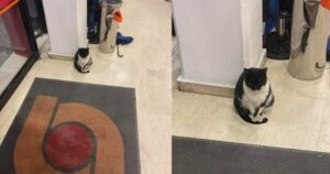 Γατούλα κάθεται μέσα σε κατάστημα Σκλαβενίτη για να αποφύγει το κρύο και τη βροχή- Είναι στην υποδοχή
