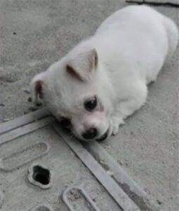 Στο καπάκι αυτού του υπονόμου, η μητέρα του κουταβιού είχε πεθάνει