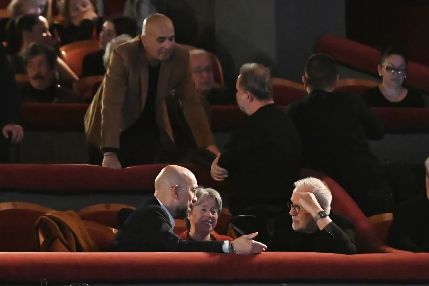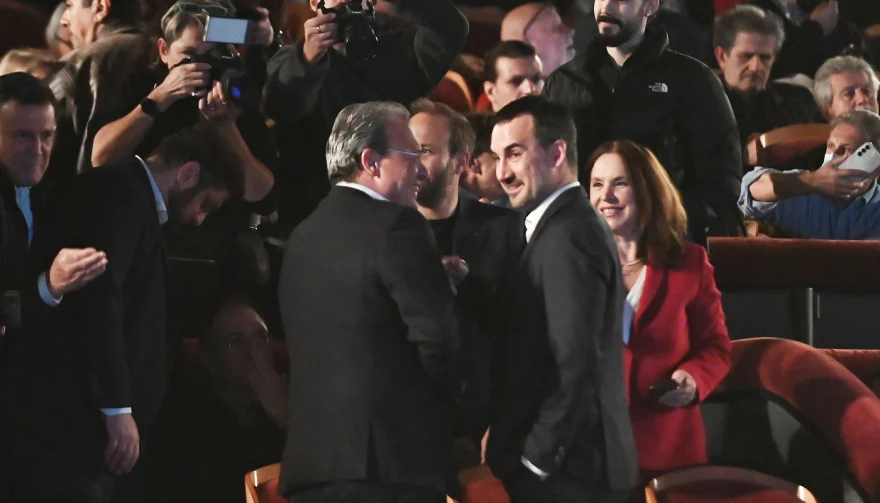 Μάλιστα πολλοί φώναζαν «να τος, να τος ο πρωθυπουργός» κατά την είσοδο του Αλέξη Τσίπρα στο θέατρο.