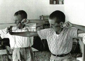 Εκείνη την εποχή, τα παιδιά είχαν απαραίτητα μαζί τους και από μία ξύλινη σφεντόνα ( τέγκαλα ) για το κυνήγι των πουλιών και για το σημάδι διαφόρων στόχων.
