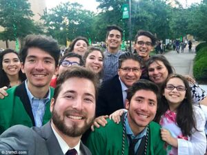 Είπε: “Δεν νομίζω ότι θα είμαι ποτέ τόσο χαρούμενος όσο ο μπαμπάς μου όταν αποφοιτήσαμε.”