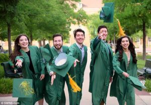 Πεντάδυμα Αδέρφια: Η Enna, η Maria, ο Emilio, ο George και ο John Diaz έβαλαν τα καλά τους για να πάρουν το πτυχίο τους μετά από τέσσερα χρόνια σπουδών στο Πανεπιστήμιο του Βόρειου Τέξας.