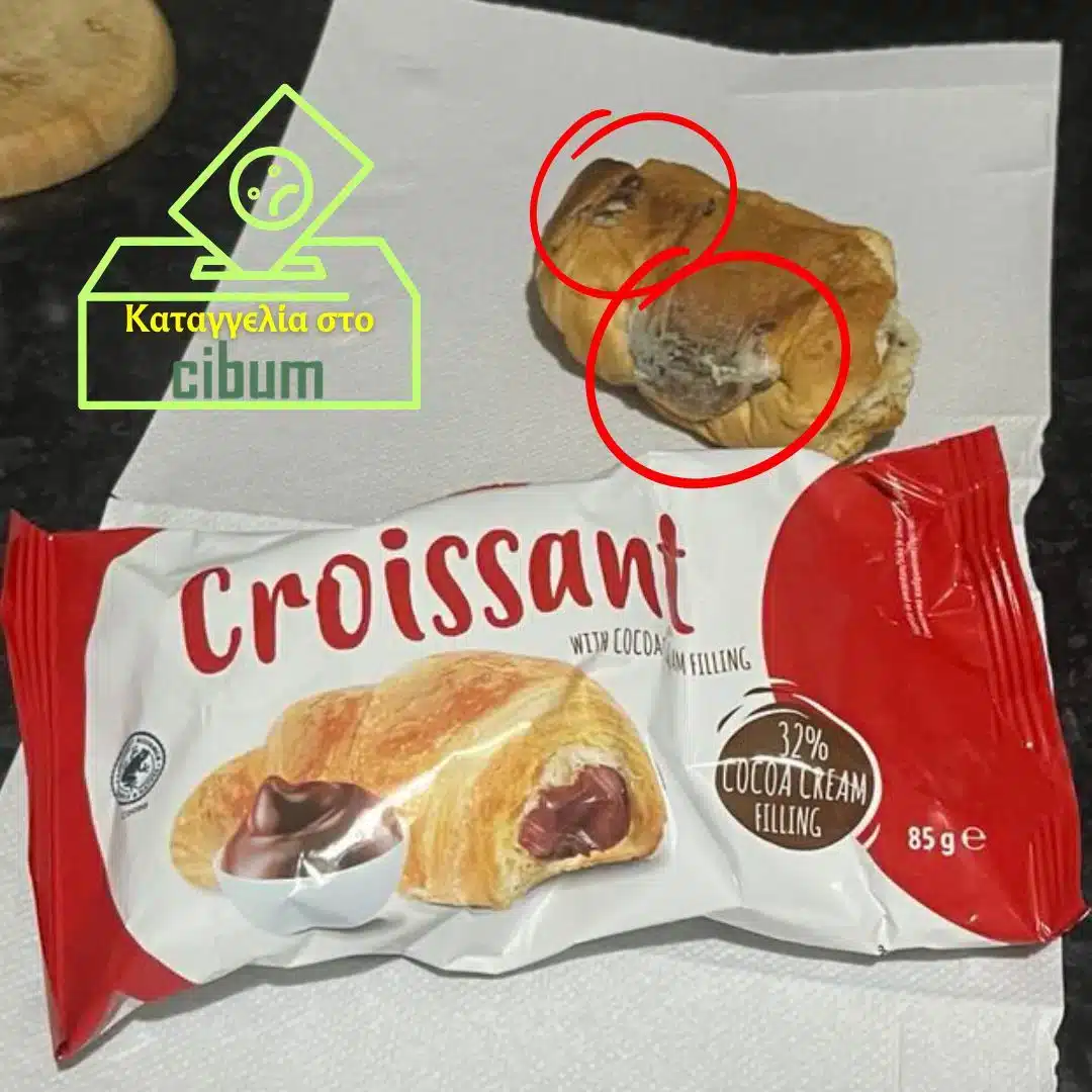Σύμφωνα με όσα καταγγέλλει στο cibum, στις 9 Σεπτεμβρίου αγόρασε από το κατάστημα Lidl στις Μουρνιές Χανίων οικονομική συσκευασία με 4 κρουασάν σοκολάτας ιδιωτικής ετικέτας του σούπερ μάρκετ. Όταν άνοιξε την πολυσυσκευασία, παρατήρησε ότι ένα από τα τέσσερα κρουασάν ήταν σε γρατζουνισμένο σακουλάκι. Το άνοιξε και διαπίστωσε σοκαρισμένη ότι το τρόφιμο ήταν μουχλιασμένο, γεμάτο περιττώματα τρωκτικών, ενώ μέρος του κρουασάν είχε ήδη καταναλωθεί από το ζώο!