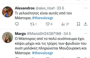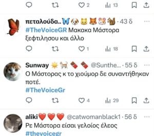 «Το χιούμορ και ο Μάστορας δεν συναντήθηκαν ποτέ» «Ξεφτιλίζεσαι, σταμάτα πια» «Πόσο ηλίθιος ο Μάστορας, μιλάνε οι άλλοι και κάνει τις @@ του. Κανένας σεβασμός ούτε στους κριτές, ουτε στον διαγωνιζόμενο».
