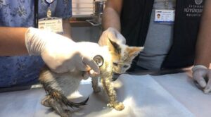 Ο κτηνίατρος, ανέφερε πως πλέον το μικρό γατί είναι απόλυτα υγιές και μπορεί να απολαμβάνει την αγάπη του Κεσκίν και της ομάδας που το έσωσε.