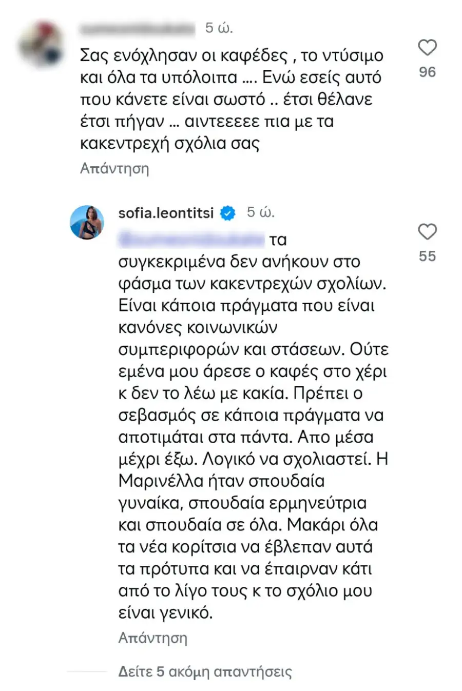 Ωστόσο, η εμφάνιση της γνωστής influencer, η οποία διαθέτει τις δικές της επιχειρήσεις, προκάλεσε έντονες αντιδράσεις στα social media, καθώς έφτασε στην κηδεία της Μαρινέλλας με καφέ στο χέρι και φορώντας τζιν.